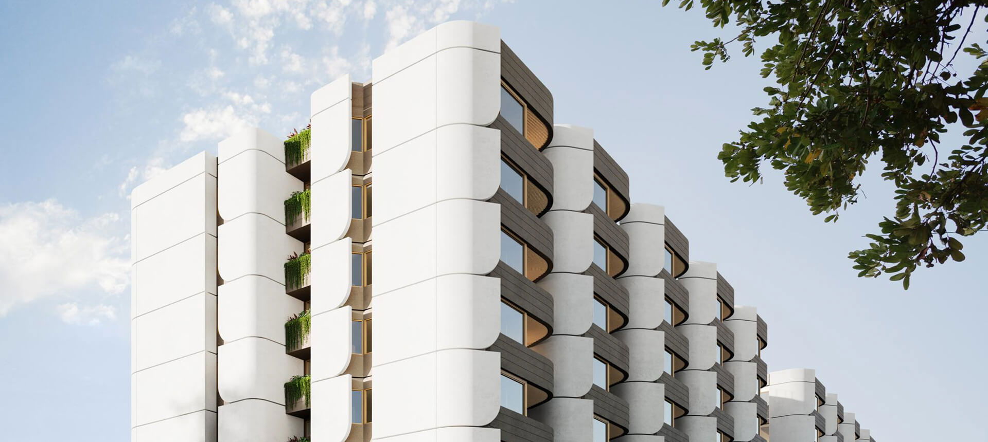 This architecturally stylish development by Mosaic Property Developments features 122 two- and three-bedroom apartments, complete with high-end amenities including a rooftop pool, open-air cinema, sky bridge, wellness centre, executive lounge and ground-floor retail spaces.